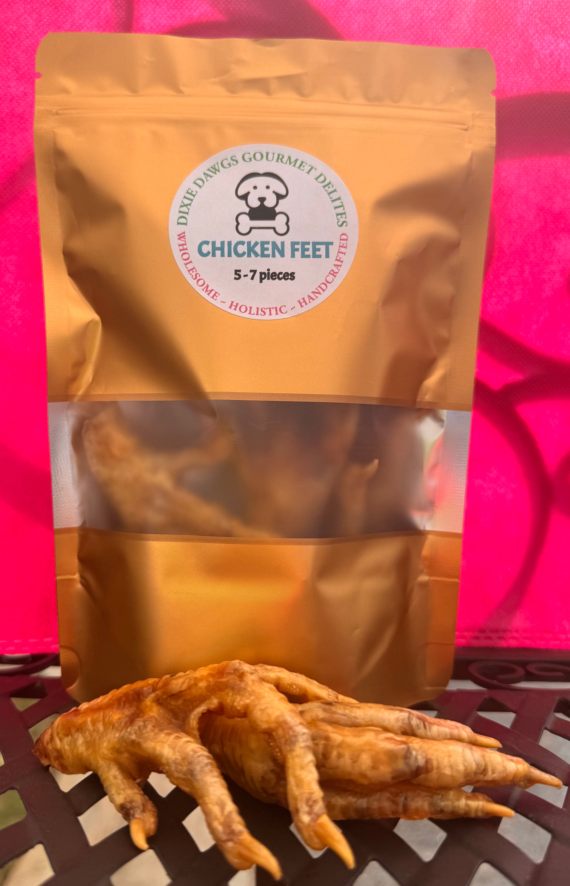 Fully digestible, dehydrated chicken feet are excellent aids in reducing tarter, are great for dogs that need love to chew, and are an excellent source of glucosamine and chondroitin. These healthy dog snacks are holistic dog treats you can feel confident feeding to your pet.